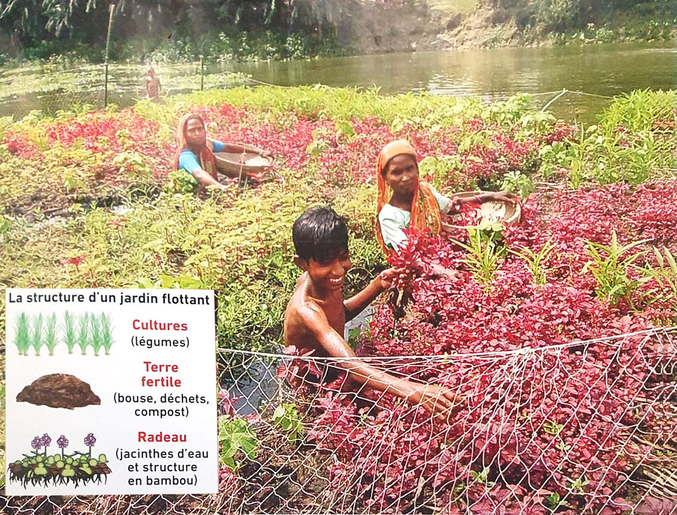 La technique du jardin flottant permet aux agriculteurs de cultiver sur des terres inondees. C est une maniere de s adapter aux effets du changement climatique.